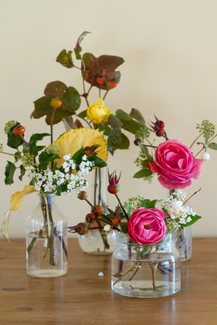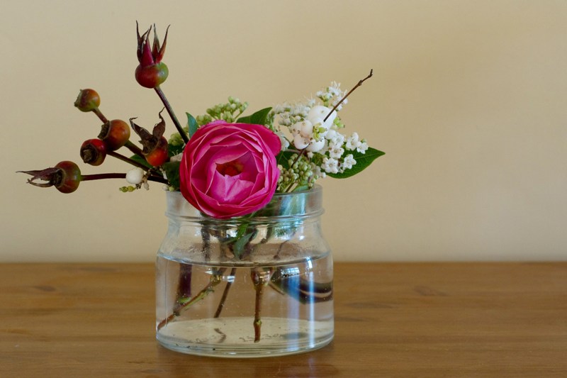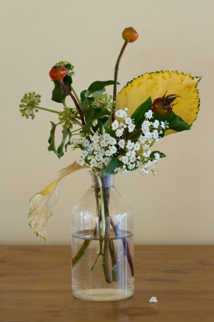 1. It’s important to work on a surface that offers plenty of room and is protected from possible water spillage and dirt (I covered the dining room table with oilcloth). Then you should gather everything that can be used in the wreath, even if in the end you decide to leave some of it out. If you enjoy simple, natural-looking arrangements, the trick is to keep the colour palette quite restricted.