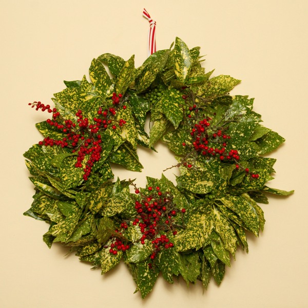 8. If you notice that the wreath is unbalanced in any way, just add one or two bunches of foliage where needed.