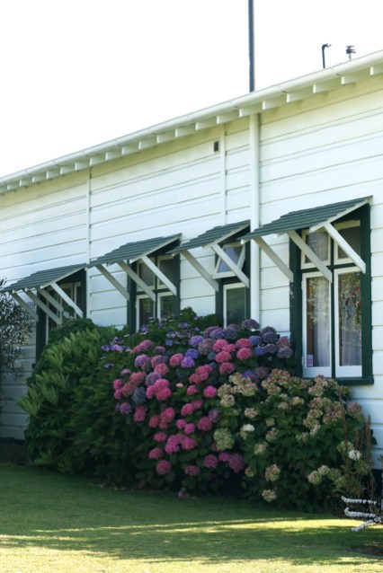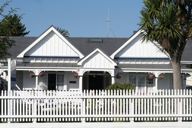 Na Nova Zelândia, as casas com 100 anos são de madeira e chamam-se villas. Têm tectos altos, salas quadradas, um corredor central, uma cozinha que dá para trás e normalmente apenas uma casa-de-banho (dentro de casa, valha-nos isso!). Não têm aquecimento central, algo que horroriza os europeus que vivem em países frios, mas que não choca dois portuguesinhos como nós. Têm lareiras, quase todas desactivadas hoje em dia, e com sorte uma salamandra. As janelas são grandes e o chão é feito de madeiras nativas como rimu ou matai (pode haver alcatifas a tapá-lo, mas isso é outra conversa). Os jardins são normalmente cottage gardens estilo inglês. Os telhados são em chapa ondulada!