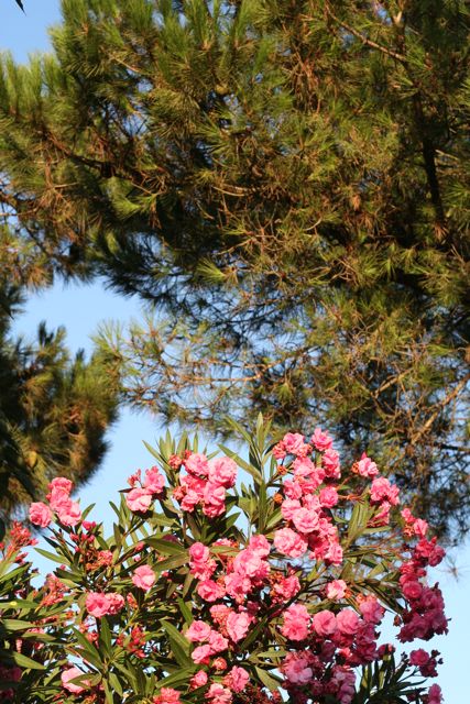 … pine trees and oleanders everywhere. And blue skies.