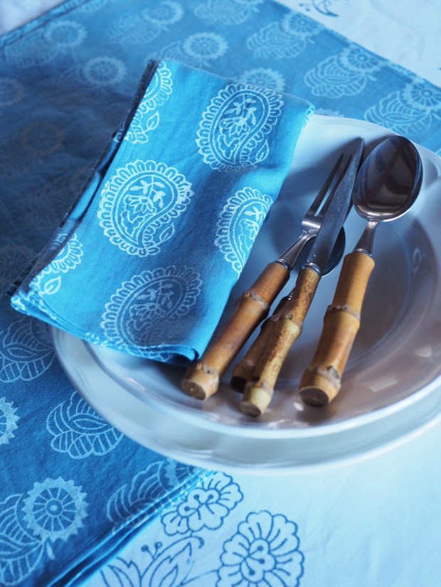 So when I realised that Rocío had a milestone birthday coming up, I knew I had to make her something a bit special. I brought out my Indian printing blocks and my textile paints and made her a block printed set of tablecloth and napkins.