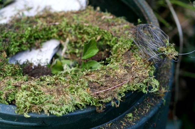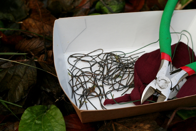 Também desfiz as coroas e aproveitei os arames e a armação para fazer uma coroa de Inverno. Tudo o resto foi para o balde de compostagem.