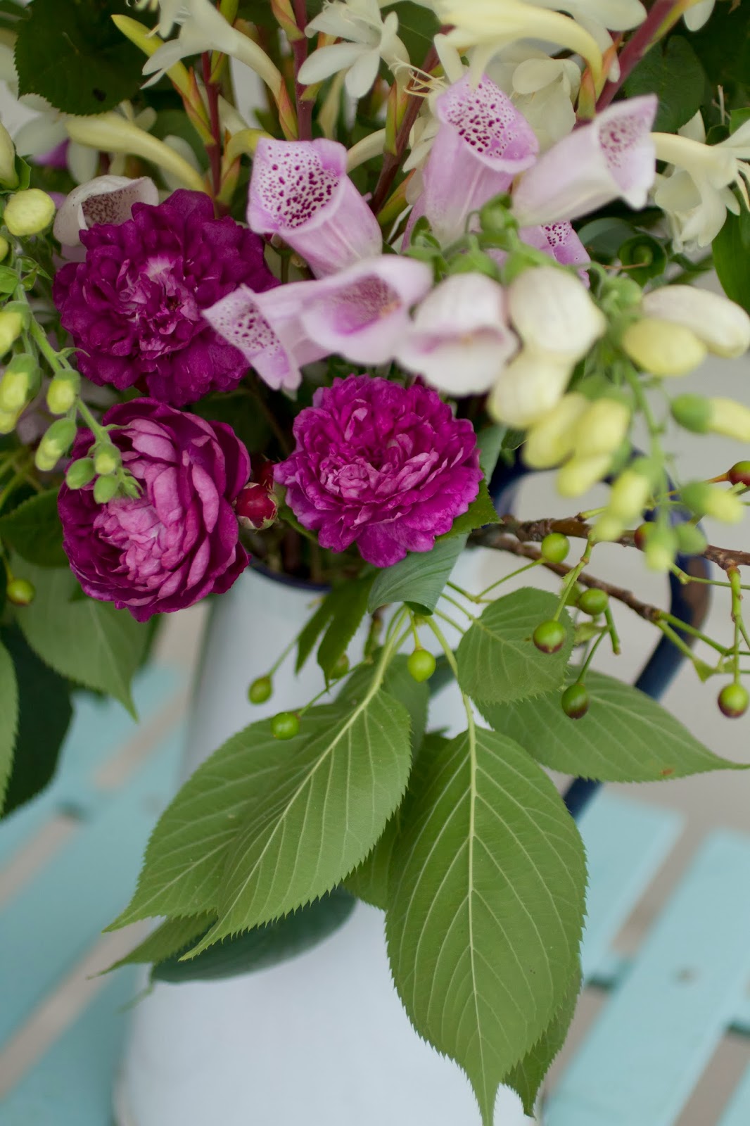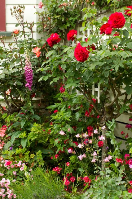 November is always the best month for flowers in our garden. We’re surrounded by old roses, aquilegias in every colour of the rainbow, foxgloves in various shades of purple and white, as well as many different species of fragrant pelargoniums. The bees are super active and the birds wake me up at 5.30 every morning.