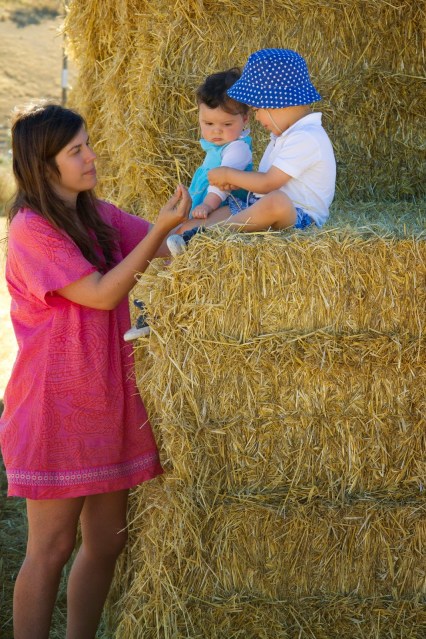 Em relação às fotografias… há qualquer coisa de ridículo nisto de nos pormos a fazer poses em frente à máquina para mostrarmos a roupa que fizemos e depois publicarmos as imagens na internet. Há quem o consiga fazer muito bem, mas eu? Nem por isso. Ainda pensei mostrar apenas as fotografias do vestido no manequim, mas não há dúvida de que a roupa ganha outra vida quando é vestida, por isso deixo aqui uns outtakes de uma sessão fotográfica que fizemos em cima de uns fardos de palha, durante as nossas férias na costa este da NZ.