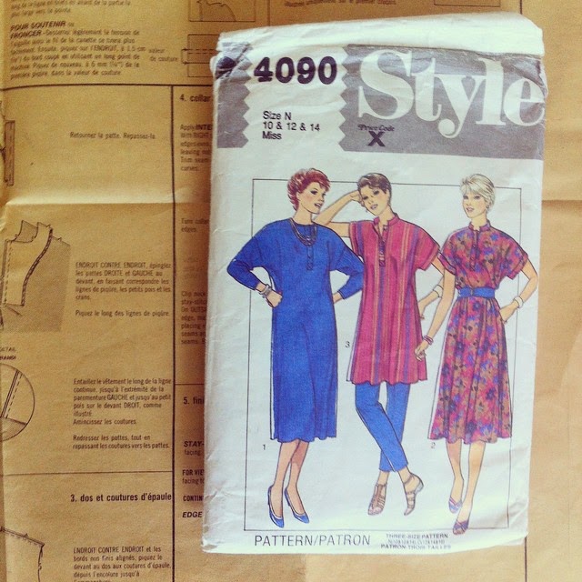 Well, my skills in this area are very limited, I can’t alter a pattern and I am incapable of shifting darts, correcting shoulders, etc. etc., so I have to start by making simple clothes. In past years I’ve sewn a few dresses (some of which have been worn more than others), a t-shirt (which I must make again because I wore that one until it almost fell apart), pyjama bottoms and children’s clothes. I’ve been buying lots of vintage patterns (I’m hoping to put some up for sale soon) and I decided to try making a 1980s potato sack. Let me tell you all about it: