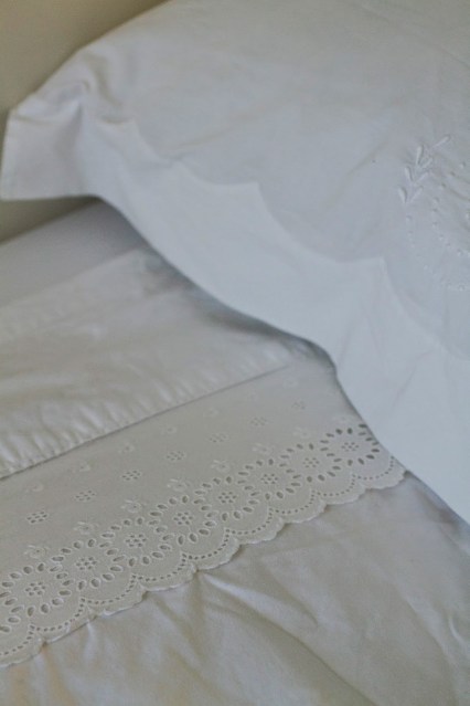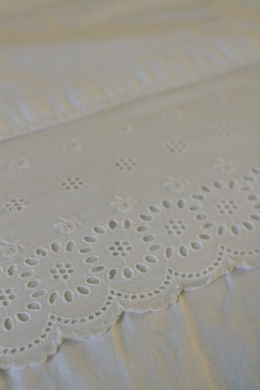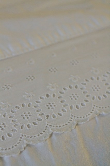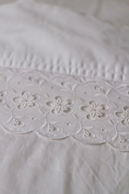 Se vier a fazer mais uma, já decidi que, em vez de aplicar o bordado em cima do lençol, vou cosê-lo de lado — assim.