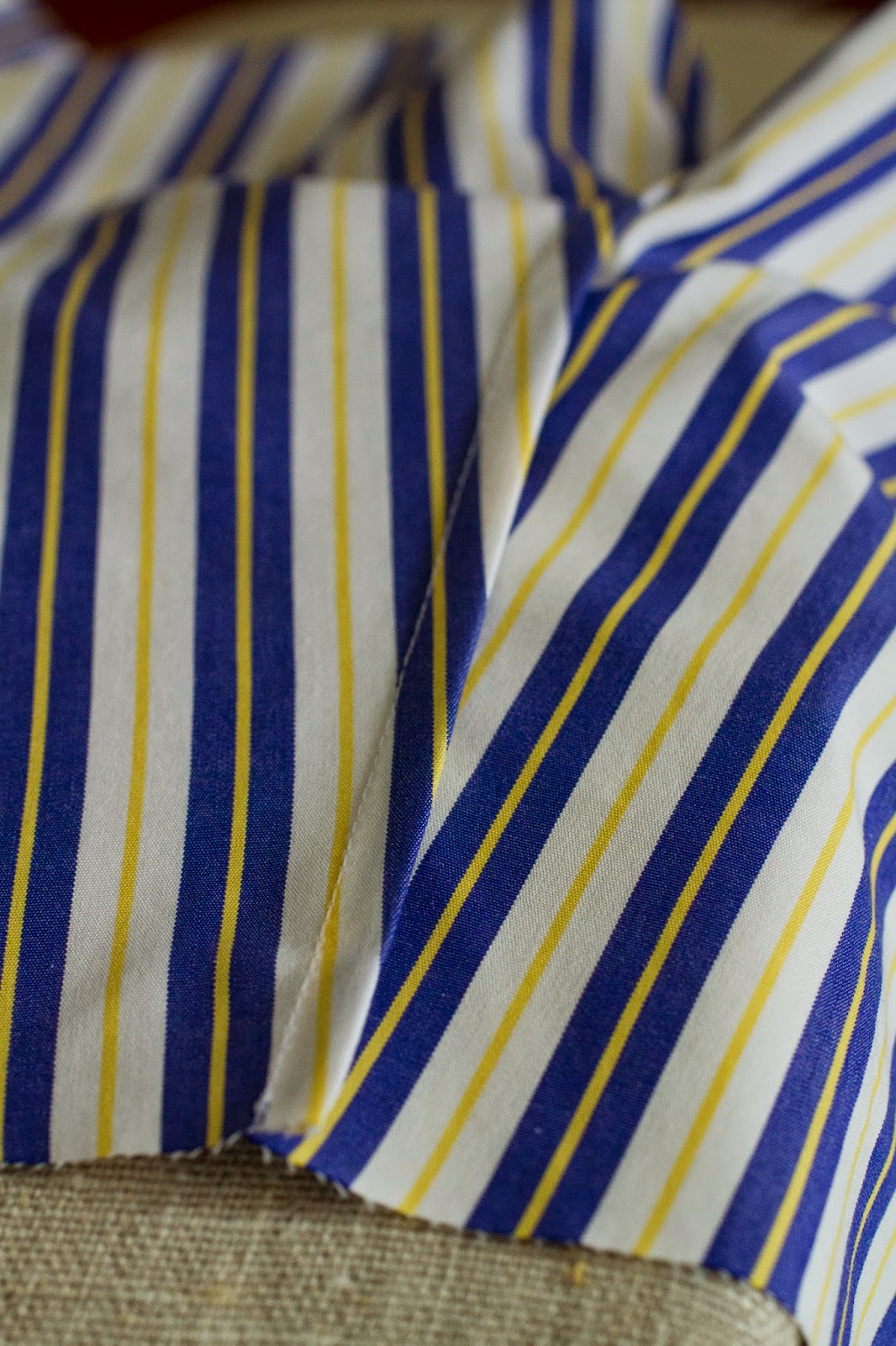 As you know, I’m always upcycling men’s shirts — I must to post a round-up of everything I’ve made so far — because they’re a source of great quality fabrics and, let’s be honest, it’s free fabric! To make each of these shorts I only used the back of the shirt and one sleeve. With the leftovers I made bibs for Pedro!