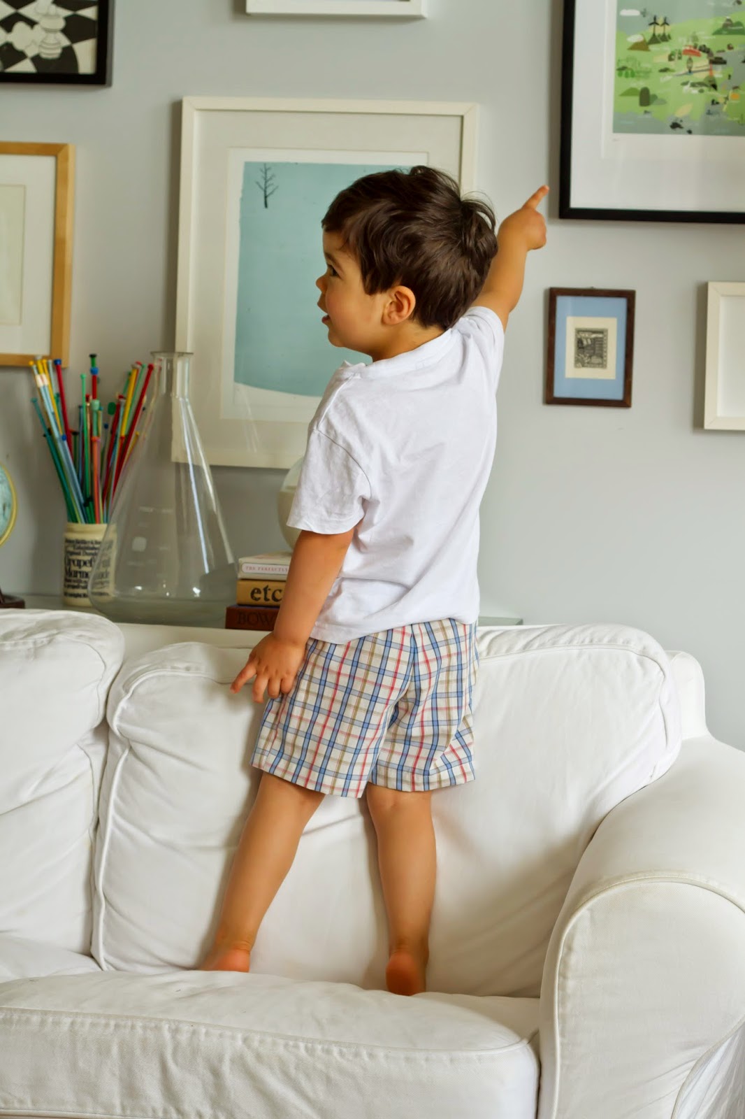It’s been hot around here and Rodrigo was in need of some cool pyjamas. Just like I did two years ago, I turned a bunch of old men’s shirts into pj bottoms, but this time I used a different pattern: Oliver + S Sunny Day Shorts.