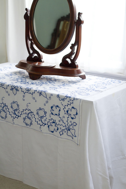 I’m really happy, not only because I now have my own dressing table, but I also rescued two towels that used to belong to our grandmothers that were destined for the rag bag.